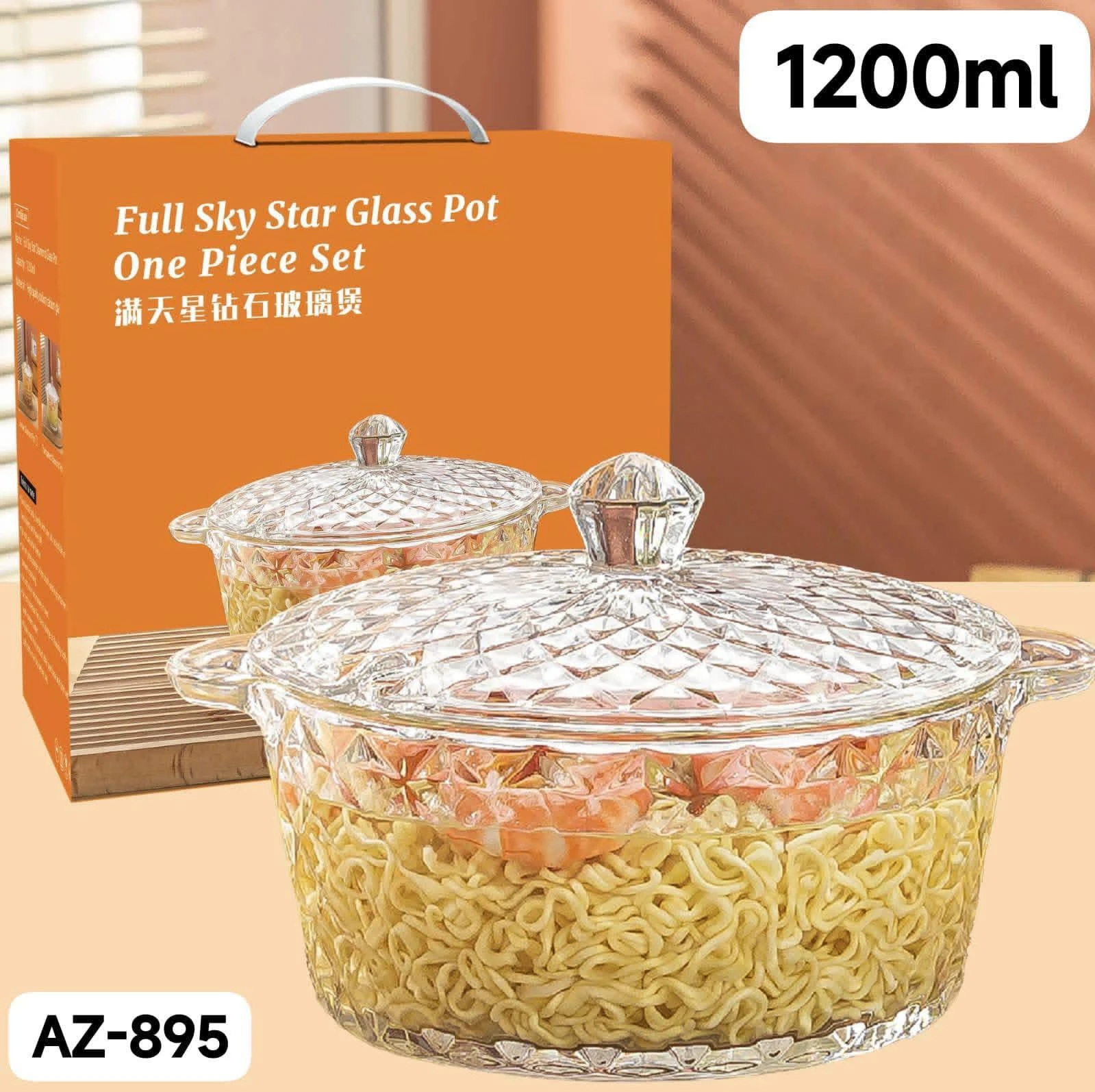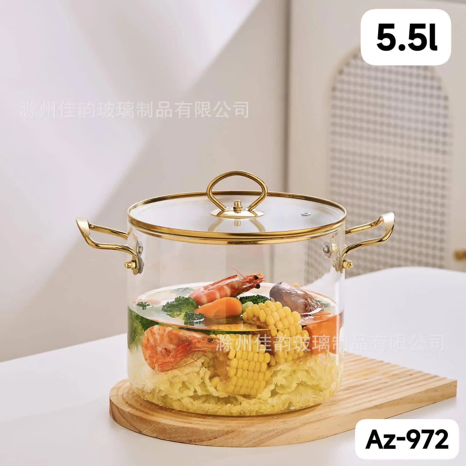 تصميم بلوري أنيق: تتميز الطنجرة بتصميمها البلوري الجذاب الذي يضفي لمسة من الأناقة على مطبخك، مما يجعلها قطعة مميزة تزين أي سطح.