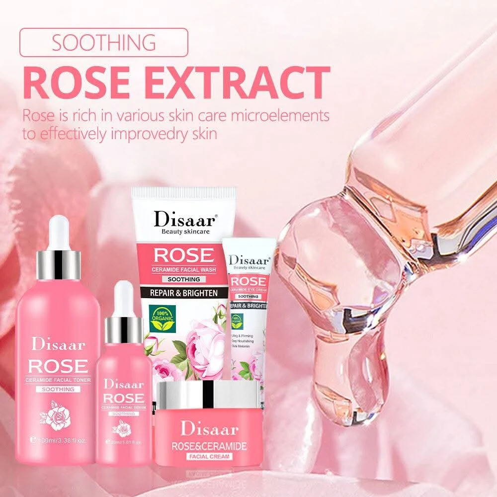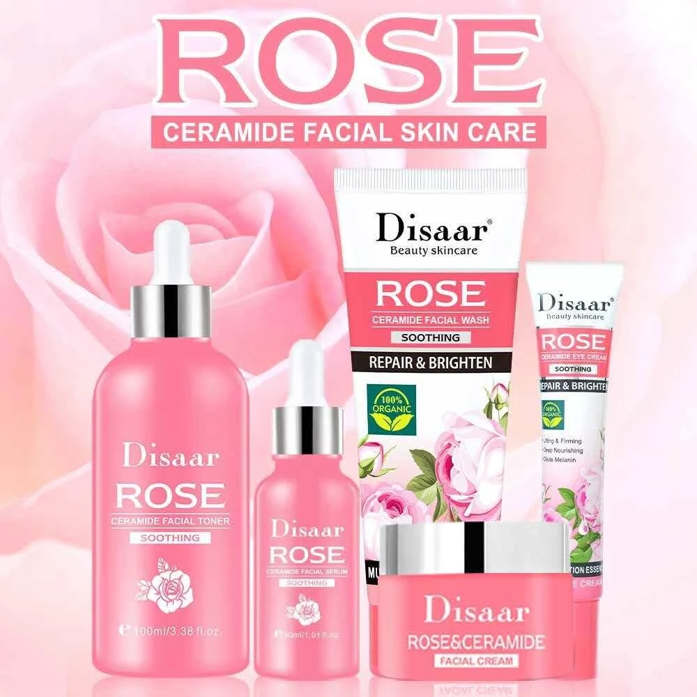 🌸 Disaar Rose Ceramide Facial Skin Care Set – مجموعة العناية بالوجه بخلاصة الورد والسيراميد 🌸 عناية شاملة لبشرتك مع مزيج فاخر من خلاصة الورد الطبيعية والسيراميد لترطيب، تهدئة، وتفتيح البشرة مع إصلاح عيوبها ومنحها إشراقة صحية. فوائد المجموعة: ترطيب عميق وحبس الرطوبة داخل البشرة. تهدئة الاحمرار والحساسية. تفتيح وتوحيد لون البشرة. إصلاح وتجديد الخلايا وحماية من الجفاف. محتويات المجموعة وطريقة الاستخدام: 1. Rose Facial Wash – غسول الورد 🖌️ ينظف البشرة بلطف ويزيل الشوائب. الاستخدام: ضعي كمية مناسبة على بشرة مبللة، دلكي بلطف ثم اشطفي. 2. Rose Eye Cream – كريم العين بالورد 🖌️ يقلل الانتفاخ والهالات السوداء. الاستخدام: ضعي نقطة صغيرة تحت العين ودلكي برفق. 3. Rose Facial Toner – تونر الورد 🖌️ يوازن البشرة ويهيئها لامتصاص المغذيات. الاستخدام: امسحي الوجه والرقبة بقطنة بعد الغسول. 4. Rose Facial Serum – سيروم الورد 🖌️ يغذي البشرة ويحسن مرونتها. الاستخدام: ضعي 2–3 قطرات ودلكي حتى الامتصاص. 5. Rose Facial Cream – كريم الورد المرطب 🖌️ يحبس الرطوبة ويمنح البشرة نعومة فائقة. الاستخدام: وزعيه على الوجه والرقبة صباحًا ومساءً. 💖 لنعومة، نضارة، وإشراقة طبيعية… اختاري مجموعة الورد من Disaar! |