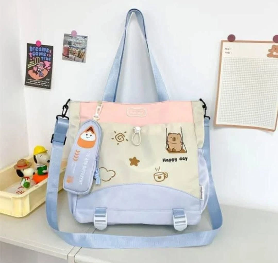 تقدم حقيبة الكتف المدرسية للمراهقين برسومات لطيفة ومقلمة مزيجًا مثاليًا من الأناقة والوظيفة. هذه الحقيبة مصممة خصيصًا لتلبية احتياجات الطلاب المراهقين الذين يبحثون عن حقيبة عملية وجذابة في الوقت نفسه. تتميز بتصميمها العصري والرسومات الجذابة التي تضيف لمسة من المرح إلى يومهم الدراسي.
