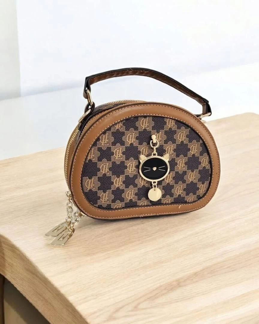 حقيبة كتف نسائية مدورة مع اكسسوار شكل قطة
