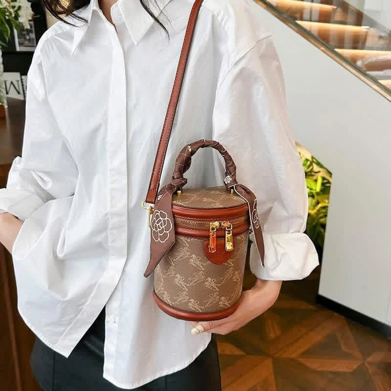 اكتشفي الأناقة والتميز مع حقيبة اليد النسائية المصممة بشكل مخروط فريد، والمزينة بشريطة أنيقة تضيف لمسة من الرقي. هذه الحقيبة ذات اللون البني مع حواف بلون عسلي تُعد الخيار المثالي للمرأة العصرية التي تبحث عن الأناقة والعملية في آن واحد. سواء كنتِ في العمل أو في نزهة مع الأصدقاء، ستضفي هذه الحقيبة لمسة من الجمال على إطلالتك.