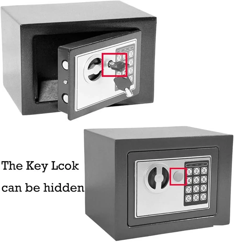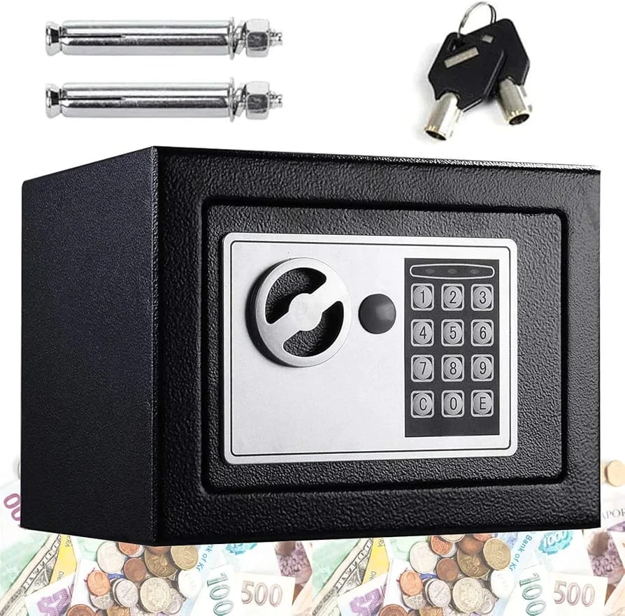 تتميز الخزنة بنظام قفل مزدوج، حيث تجمع بين القفل الإلكتروني ولوحة المفاتيح الرقمية، مع إمكانية الفتح باستخدام مفتاح تقليدي في حالات الطوارئ. تبلغ أبعادها 17 × 23 × 17 سم، وسعتها الداخلية حوالي 10 لترات، مما يسمح بتخزين الأوراق والمستندات بحجم A5. مصنوعة من الفولاذ الصلب المقاوم للصدأ، وتحتوي على جدران وأبواب سميكة لتوفير حماية ضد السرقة. يمكن تثبيتها على الحائط أو الأرضية، وتأتي مع مسامير تثبيت ومفتاحين. تستخدم لتأمين الأشياء الثمينة مثل النقود والمجوهرات والوثائق المهمة والإلكترونيات الصغيرة. |