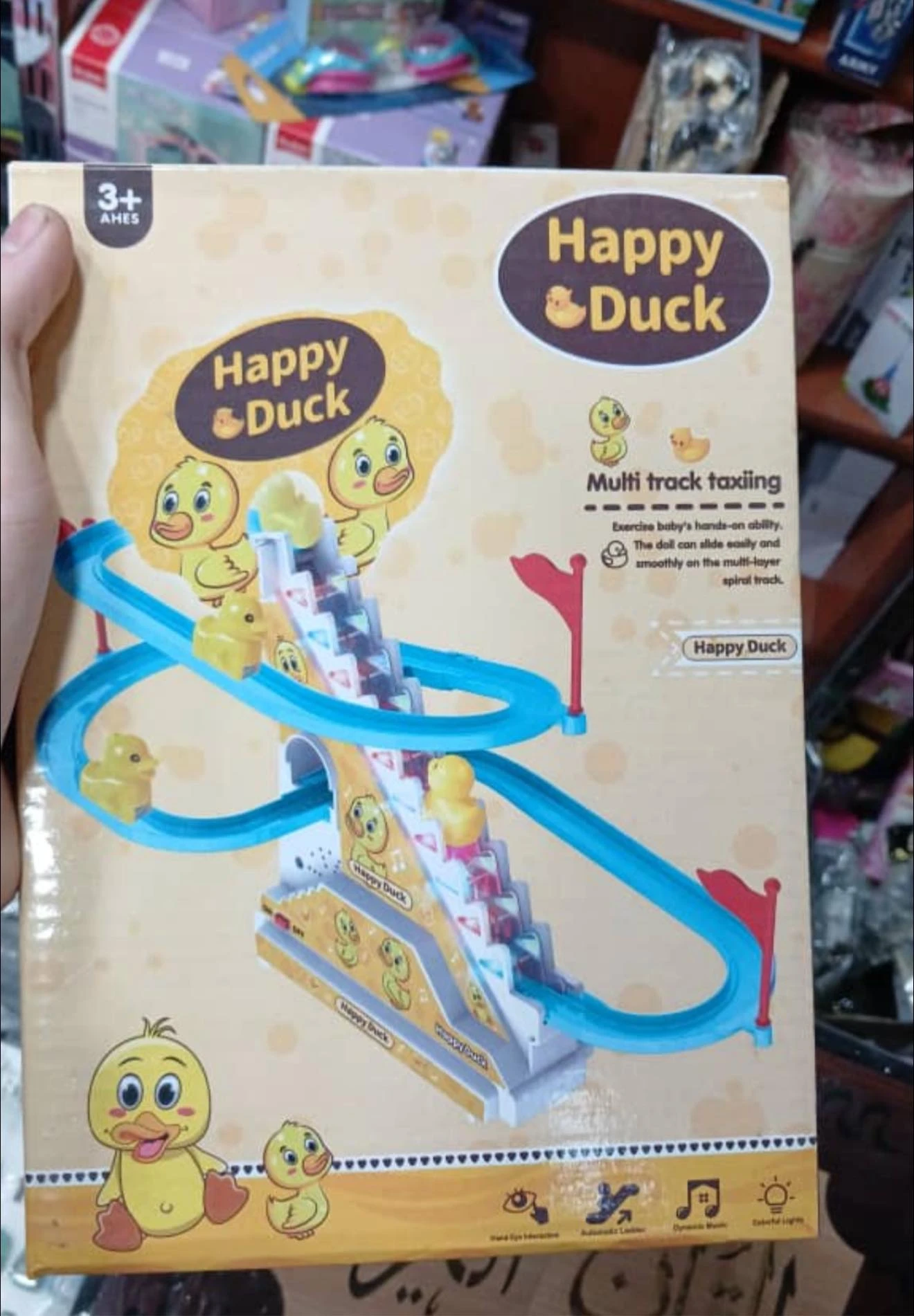 هي لعبة تفاعلية مشهورة جداً للأطفال، فكرتها إنو البطات بتطلع عالدرج (بشكل أوتوماتيكي) وبتتزحلق عالسكة مع موسيقى وأضواء. • شو بتعمل اللعبة؟: هي عبارة عن مسار (سكة) مع درج كهربائي. البطات الصغار بيطلعوا عالدرج لحالهم (أوتوماتيك) بس يوصلوا لفوق، وبيتزحلقوا عالدحروجة وبيرجعوا بيعيدوا اللفة. • الميزات: بتيجي مع موسيقى وأضواء ملونة بتجذب انتباه الطفل. بتشتغل على بطاريات (AA). • الفائدة: مسلية كتير للأطفال الصغار (من عمر 3 سنين وفوق) وبتساعدهم يركزوا نظرهم ويتبعوا الحركة (Hand-eye coordination). |