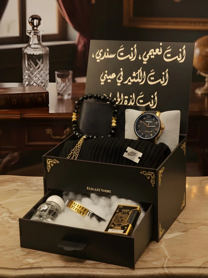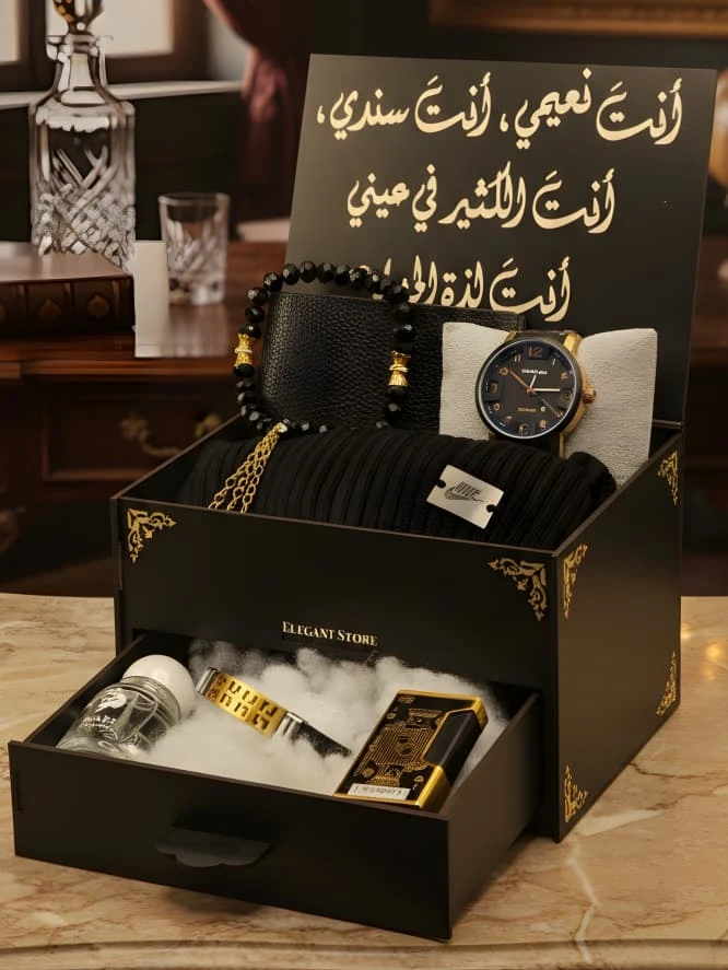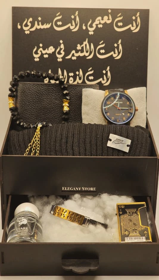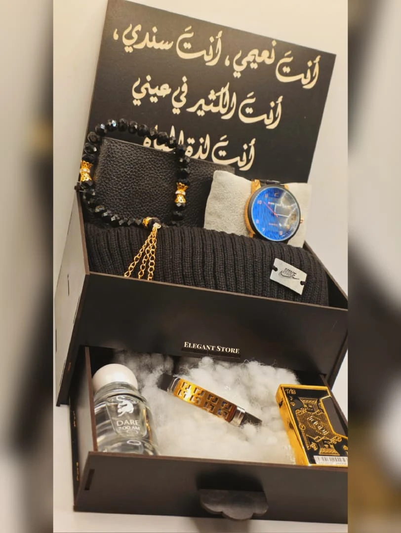*⚜️ مـلاذ الأنــاقــة حــيــث تــكــتــمــل الــحــكــايــة ⚜️* *لأن الــهــدايـا لــيــســت مــجــرد أشــيــاء ، بــل هــي مــشــاعــر تُــصــاغ بــعــنــايــة ، نــضــع بــيــن يــديــك "مــجــمــوعــة الــفــخــامــة الــمــتــكــامــلــة" الــمــصــمــمــة خــصــيــصــاً لــمــن يــقــدرون أدق الــتــفــاصــيــل ويــطــمــحــون لــلــتــمــيــز .* *🔅 مــحــتــويــات الإصــدار الــخــاص 🔅* *ســاعــة صــفــوة الــوقــت بــتــصــمــيــم كــلاســيــكــي يــجــمــع بــيــن الــلــونــيــن الــذهــبــي والأســود لــطــلّــة مــلــكــيــة .* *عــطــر DARE نــفــحــات عــطــريــة آســرة تــمــنــحــك حــضــوراً طــاغــيــاً لا يُــنــســى .* *مــســبــحــة الأنــاقــة مــصــنــوعــة مــن خــرز فــاخــر بــتــفــاصــيــل ذهــبــيــة تــضــفــي هــيــبــة ووقــاراً .* *طــاقــيــة الــصــوف الــنــبــيــل حــيــاكــة مــتــقــنــة تــمــنــحــك الــدّفء بــلــمــســة عــصــريــة .* *الــمــحــفــظــة الــجــلــديــة جــلــد فــاخــر بــتــصــمــيــم نــحــيــف وعــمــلــي .* *ســوار الــجــلــد مــزيــج مــن الــفــخــامــة والــقــوة لإتــمــام مــظــهــرك .* *الــقــدّاحــة الــمــلــكــيــة قــطــعــة فــنــيــة فــريــدة بــتــصــمــيــم مــحــفــور، لــتــكــتــمــل بــهــا مــجــمــوعــتــك .* *تــأتــيــك هــذه الــمــجــمــوعــة داخــل صــنــدوق خــشــبــي فــاخــر ، يــعــلــوه نــقــش بــالــخــط الــعــربــي الأصــيــل "أَنــتَ نــعــيــمــي، أَنــتَ ســنــدي، أَنــتَ الــكــثــيــر فــي عــيــنــي"* *⚜️ Elegant Store | عــنــوان الــفــخــامــة فــي كــل تــفــصــيــل⚜️* |