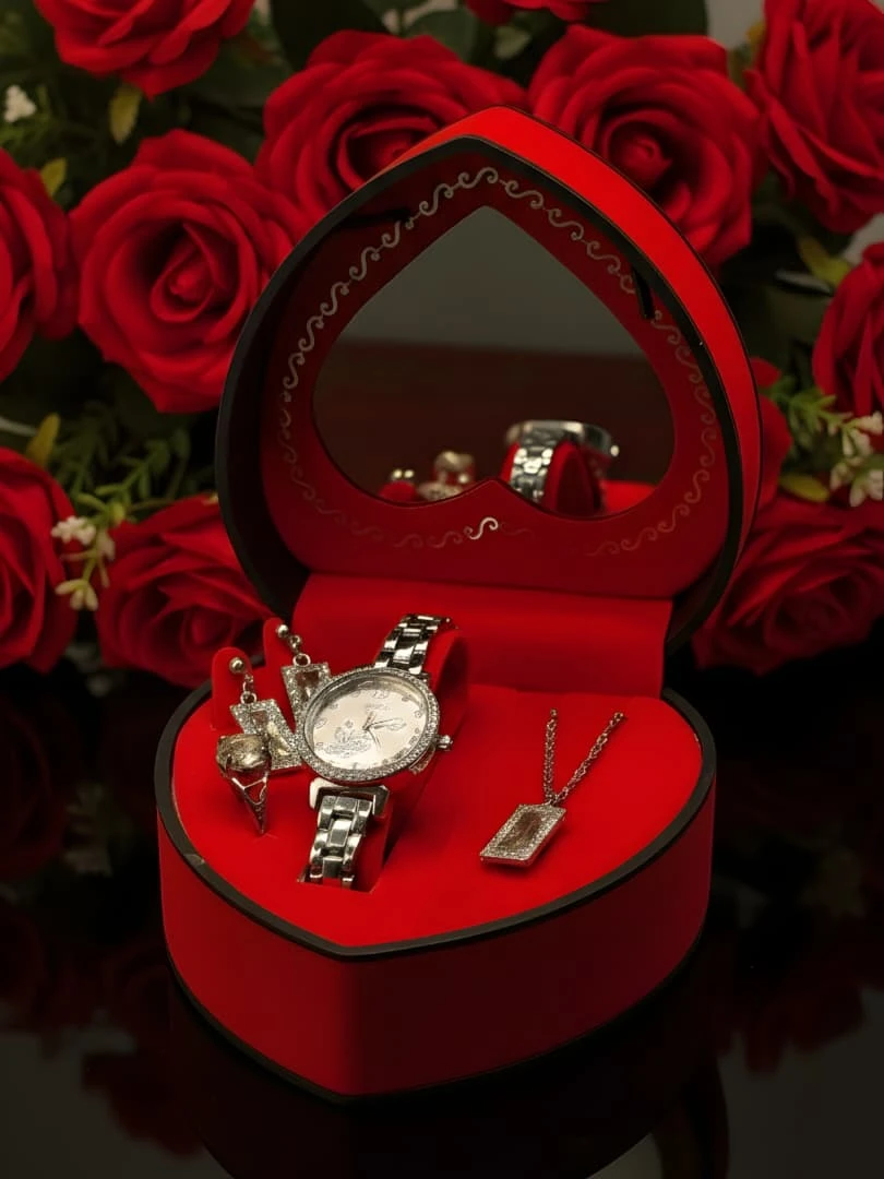 " ✨💍❤️❤️🥺 هـديـة تـخـتـصـر كـل الـكـلام فـي قـلـب واحـد 🥺❤️❤️💍✨ " لأنـهـا تـسـتـحـق الـتـمـيّـز ، قـدمـنـا لـكِ هـذا الـطـقـم الـفـاخـر الـذي يـجـمـع بـيـن دقـة الـسـاعـة وبـريـق الألـمـاس ❤️✨ . 💎طـقـم مـلـكـي مـتـكـامـل [ سـاعـة مـرصـعـة _ قـلادة _ أقـراط _ خـاتـم ]💎 تـغـلـيـف اسـتـثـنـائـي بـوكـس مـخـمـلـي عـلـى شـكـل قـلـب بـلـمـسـة فـنـيـة فـاخـرة أنـاقـة تـدوم تـصـمـيـم عـصـري بـجـودة عـالـيـة تـخـطـف الأنـظـار . أبـهـرهـا بـجـمـال الـتـفـاصـيـل .. اطـلـبـهـا الآن🛍️ |