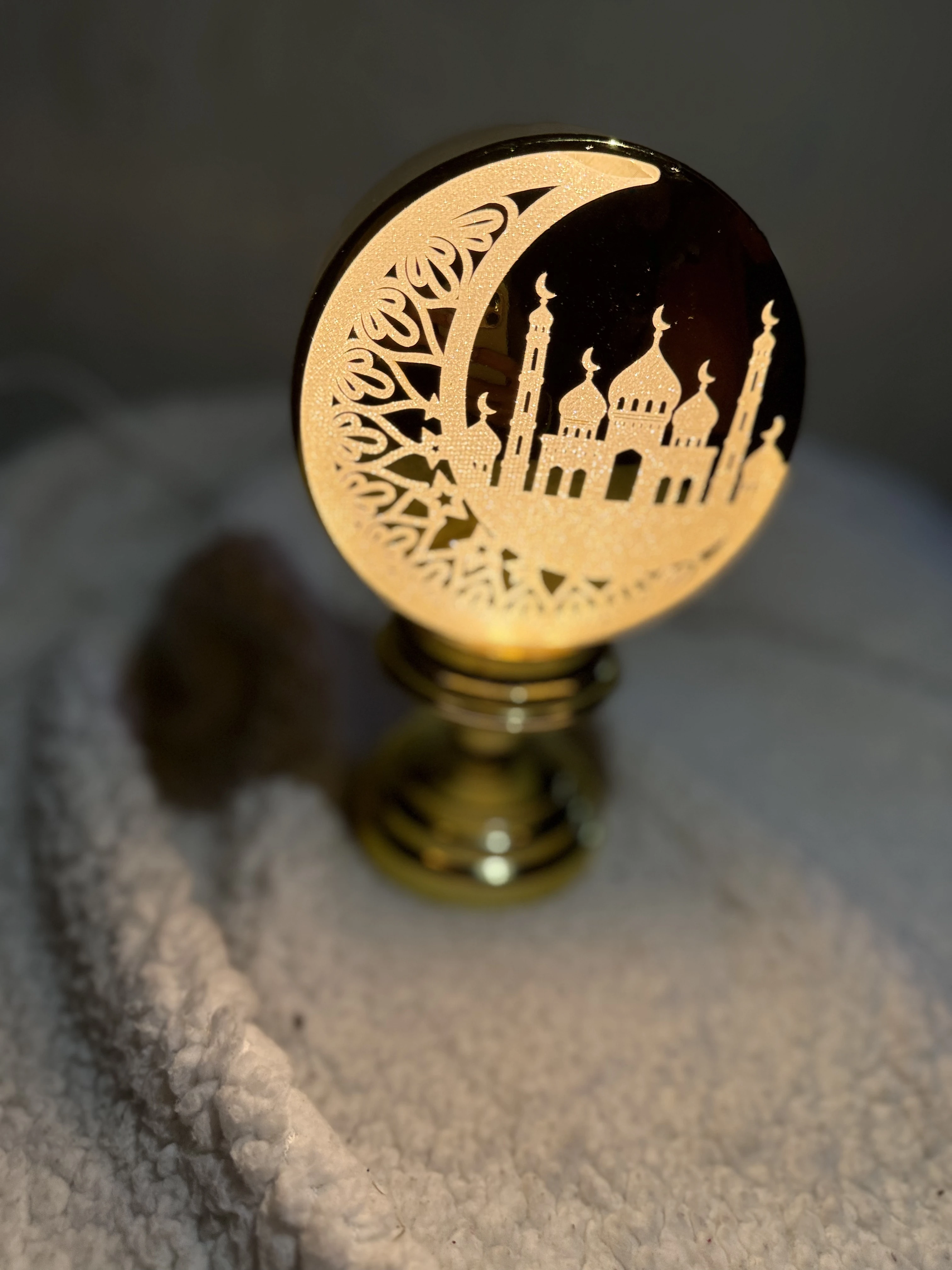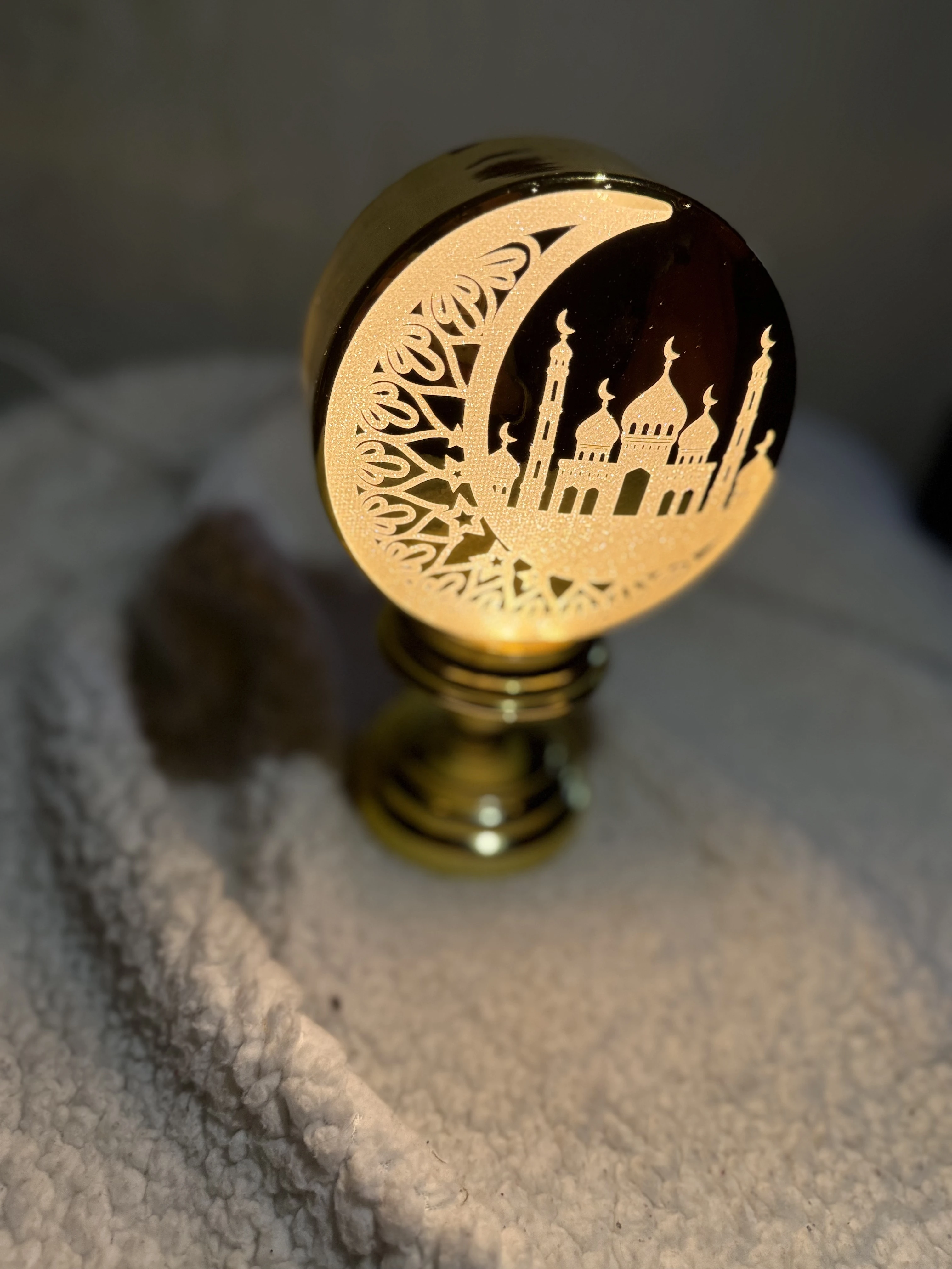 تصميم فريد: يتميز المجسم بتصميمه الذي يجمع بين الهلال والجامع، ليعكس جمال الفن الإسلامي وروحانيته.