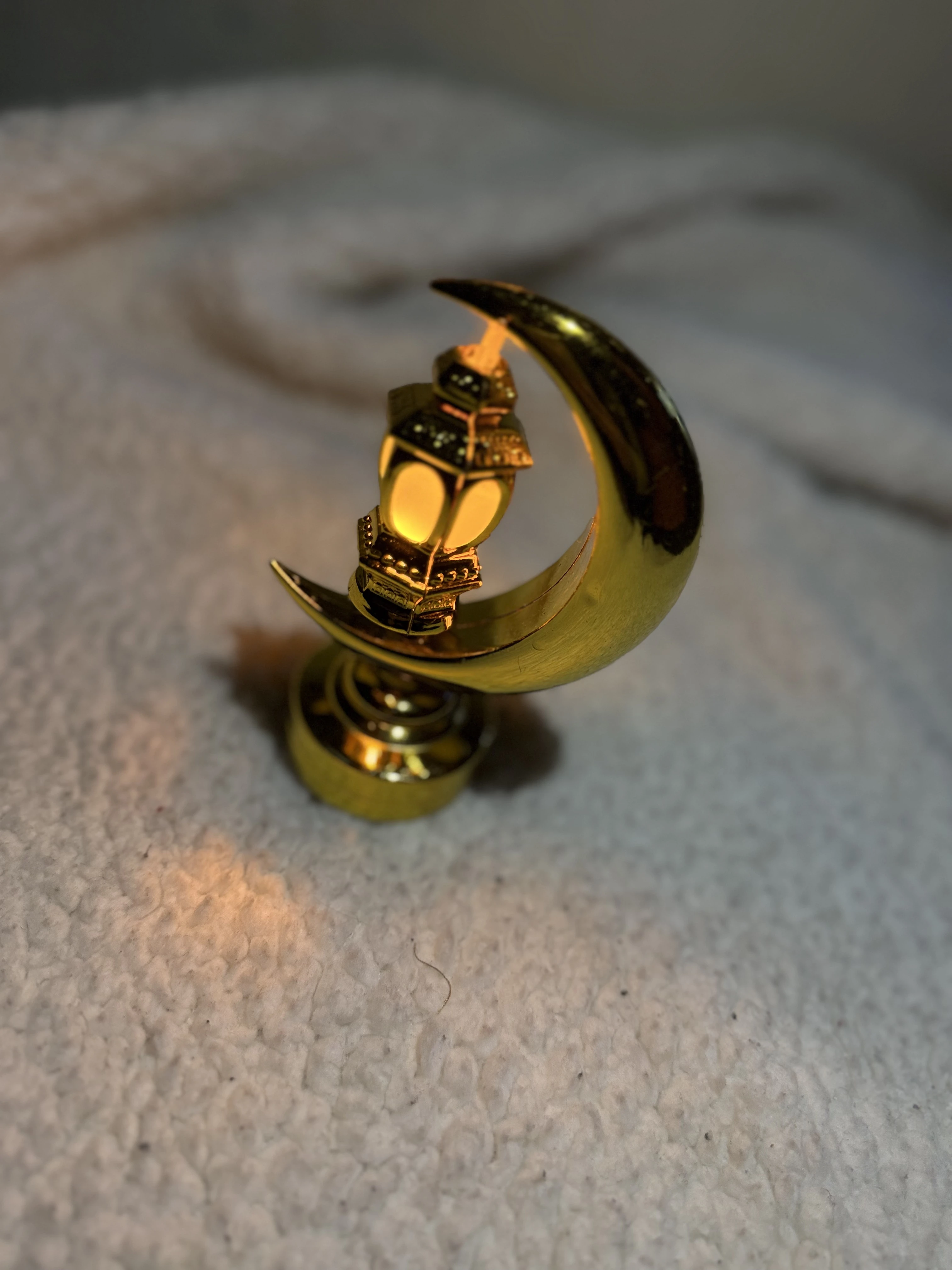 مجسم هلال رمضان باللون الذهبي الناصع