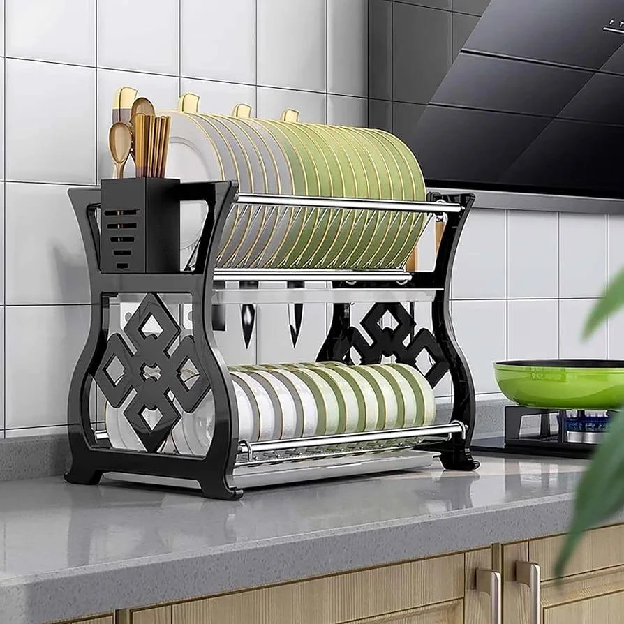 رف تجفيف أطباق من الفولاذ المقاوم للصدأ مع مصفاة وحامل أدوات - رف أطباق أسود من طبقتين لسطح المطبخ حوّل مطبخك إلى مساحة عصرية مع رف تجفيف الأطباق الأنيق والعملي المصنوع من الفولاذ المقاوم للصدأ. صُمم هذا الرف الأسود ذو الطبقتين خصيصًا للمنازل الحديثة، وهو مثالي لمن يرغب في استغلال مساحة سطح المطبخ على أكمل وجه مع الحفاظ على ترتيبه. بفضل هيكله المتين المصنوع من الفولاذ المقاوم للصدأ، والمصفاة المدمجة، وحامل الأدوات، يوفر لك هذا الرف الحل الأمثل لتجفيف الأطباق بسرعة وكفاءة. هيكل متين من الفولاذ المقاوم للصدأ: صُنع هذا الرف من الفولاذ المقاوم للصدأ عالي الجودة، وهو مصمم ليتحمل الاستخدام اليومي دون أن يصدأ أو يتآكل، مما يضمن أداءً يدوم طويلًا. تصميم من طبقتين: يتيح لك التصميم المبتكر ذو الطبقتين تجفيف المزيد من الأطباق في مساحة أقل، مما يجعله مثاليًا للمطابخ الصغيرة والكبيرة على حد سواء. مصفاة مدمجة: تضمن المصفاة المدمجة تجميع الماء الزائد بكفاءة وتوجيهه بعيدًا، مما يحافظ على سطح مطبخك جافًا ونظيفًا. حامل أدوات مائدة مُرفق: يأتي مع حامل أدوات مائدة عملي للحفاظ على الشوك والسكاكين والملاعق منظمة وفي متناول اليد. لون أسود أنيق: يضفي اللون الأسود الأنيق لمسة من الرقي على ديكور مطبخك، ويتناغم بسلاسة مع أي نمط. المواصفات: المادة: فولاذ مقاوم للصدأ عالي الجودة اللون: أسود الأبعاد: 16.5 × 10.2 × 15.7 بوصة الوزن: 4.4 رطل السعة: يتسع لـ 17 طبقًا و6 أكواب يشمل: حامل أدوات مائدة ومصفاة مدمجة ارتقِ بمطبخك مع رف تجفيف الأطباق المصنوع من الفولاذ المقاوم للصدأ، وهو إضافة لا غنى عنها لكل من يبحث عن العملية والأناقة. بفضل متانته وتصميمه الذكي، يُعد إضافة أساسية لأي منزل. |