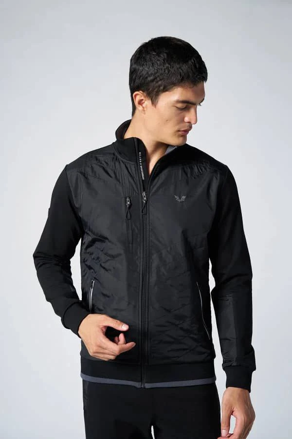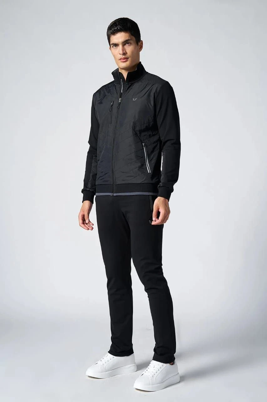 طقم رياضي رجالي أسود بياقة عالية من نسيج محبوك
