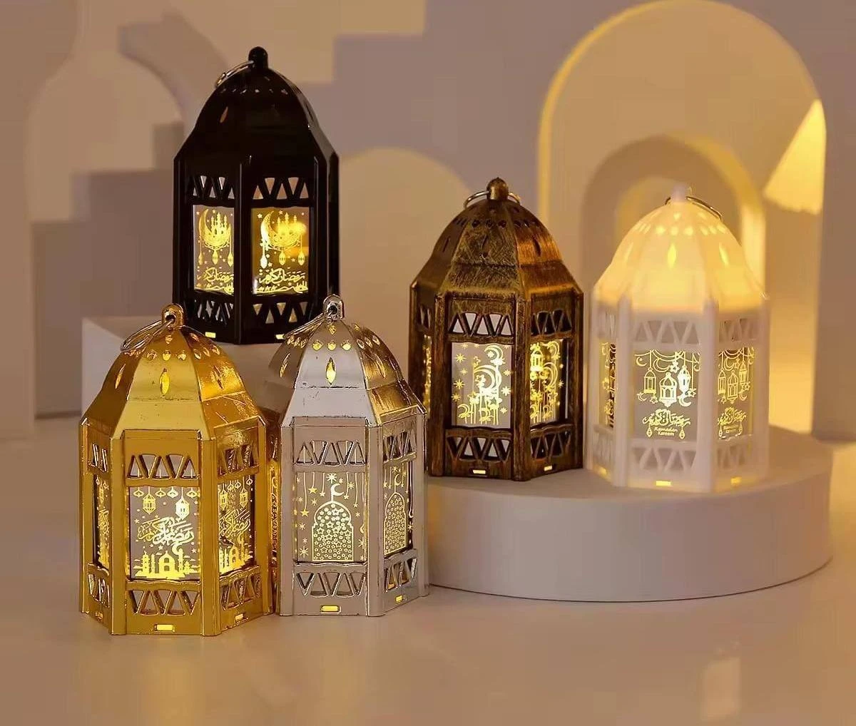Exquisite Design: Each lantern features intricate patterns that reflect the rich cultural heritage of Ramadan, adding a touch of elegance to your décor. Soft, Ambient Lighting: The lanterns emit a gentle, soothing light that creates a peaceful atmosphere, perfect for reflection and prayer. Durable Construction: Made from high-quality materials, these lanterns are built to last, ensuring they remain a staple in your Ramadan celebrations for years to come. Easy to Use: With a simple on/off switch, these lanterns are convenient and user-friendly, making them suitable for all ages. Specifications: