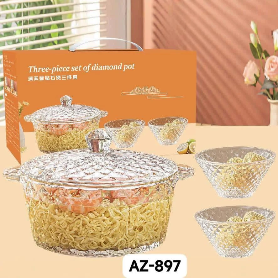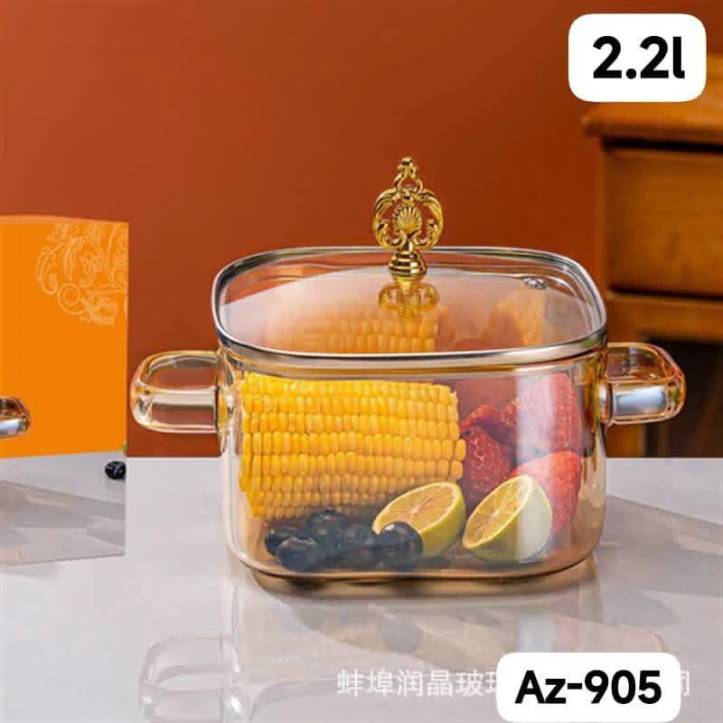تصميم بلوري أنيق: تتميز الطنجرة بتصميمها البلوري الجذاب الذي يضفي لمسة من الأناقة على مطبخك، مما يجعلها قطعة مميزة تزين أي سطح.